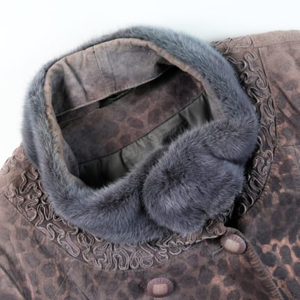 Cappotto in camoscio con inserti di pelliccia