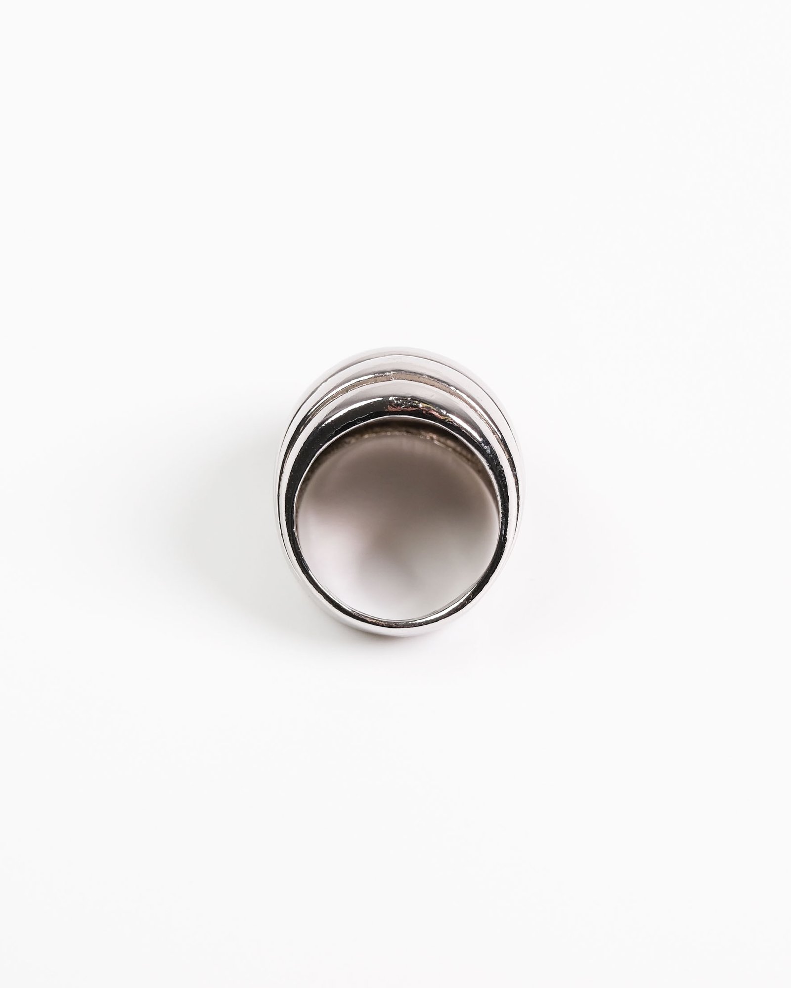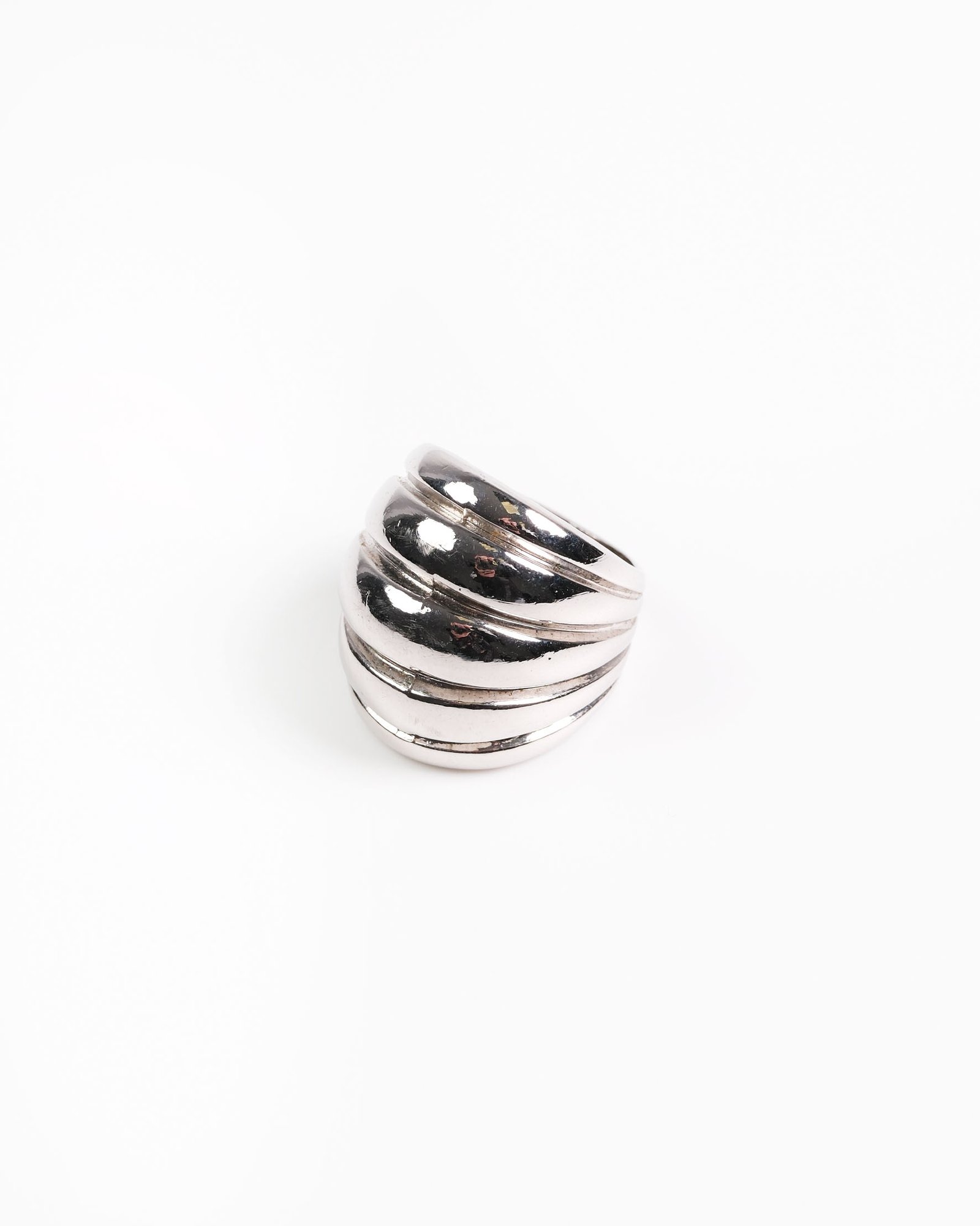Anello bombato anni 80 lavorato a coste  in colore argento.