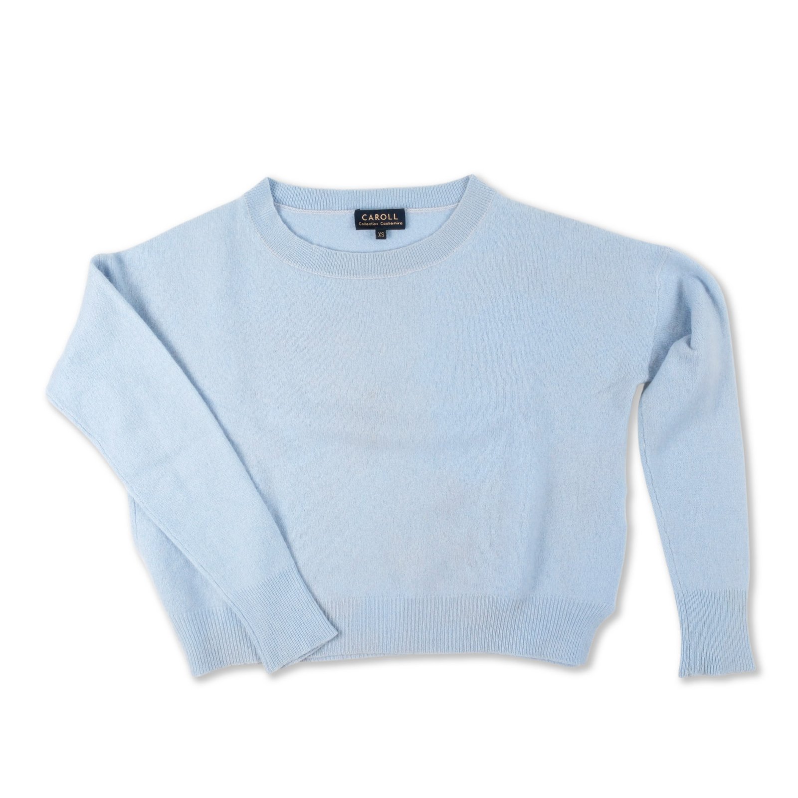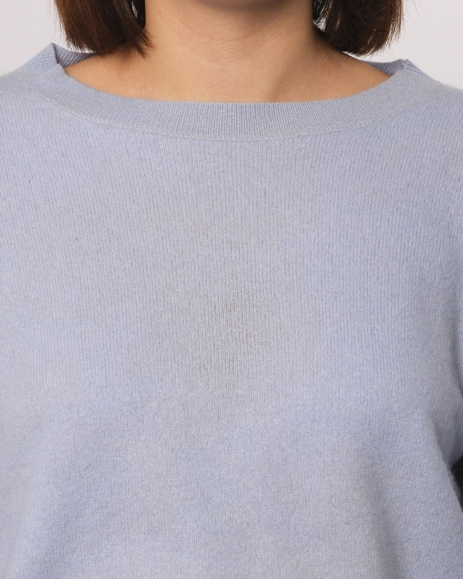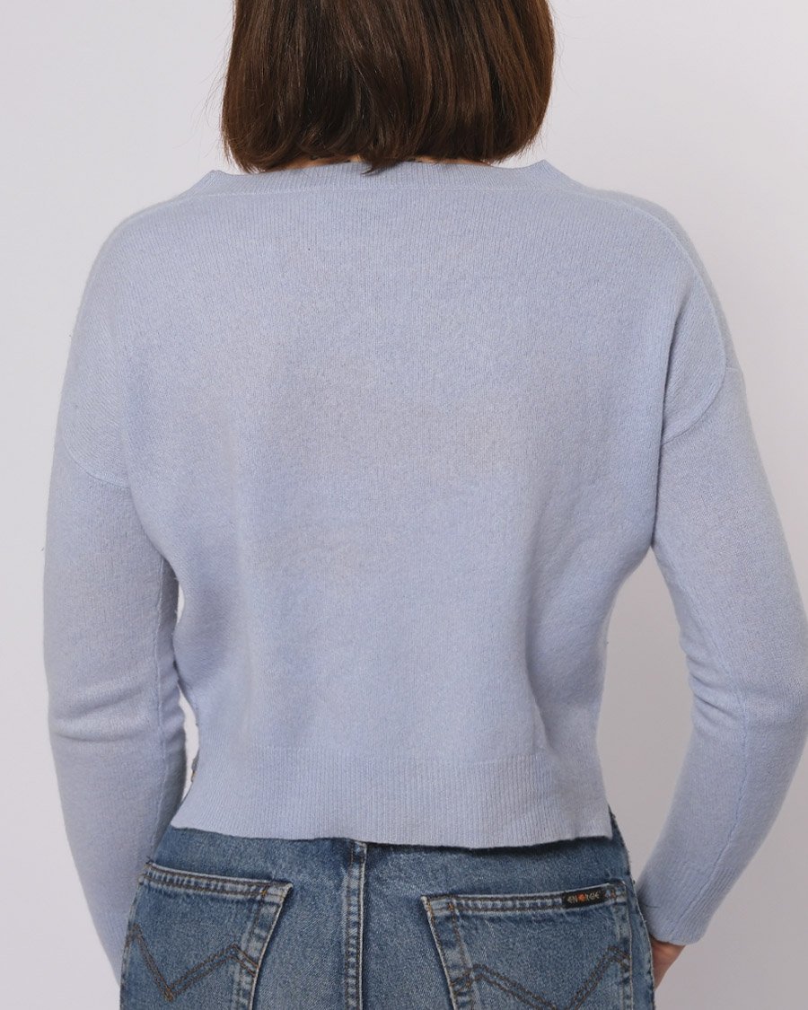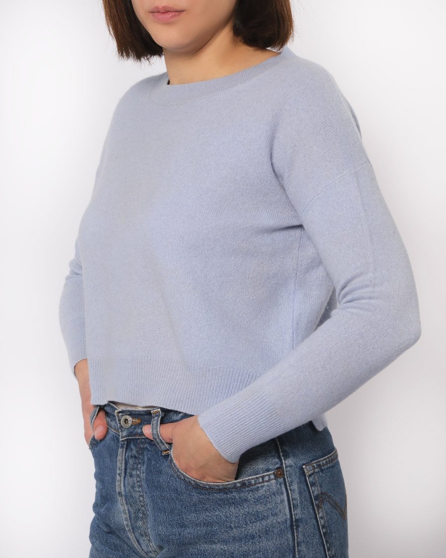 Maglione crop in cashmere azzurro .Ci sono piccole macchie per questo il prezzo ne tiene conto.