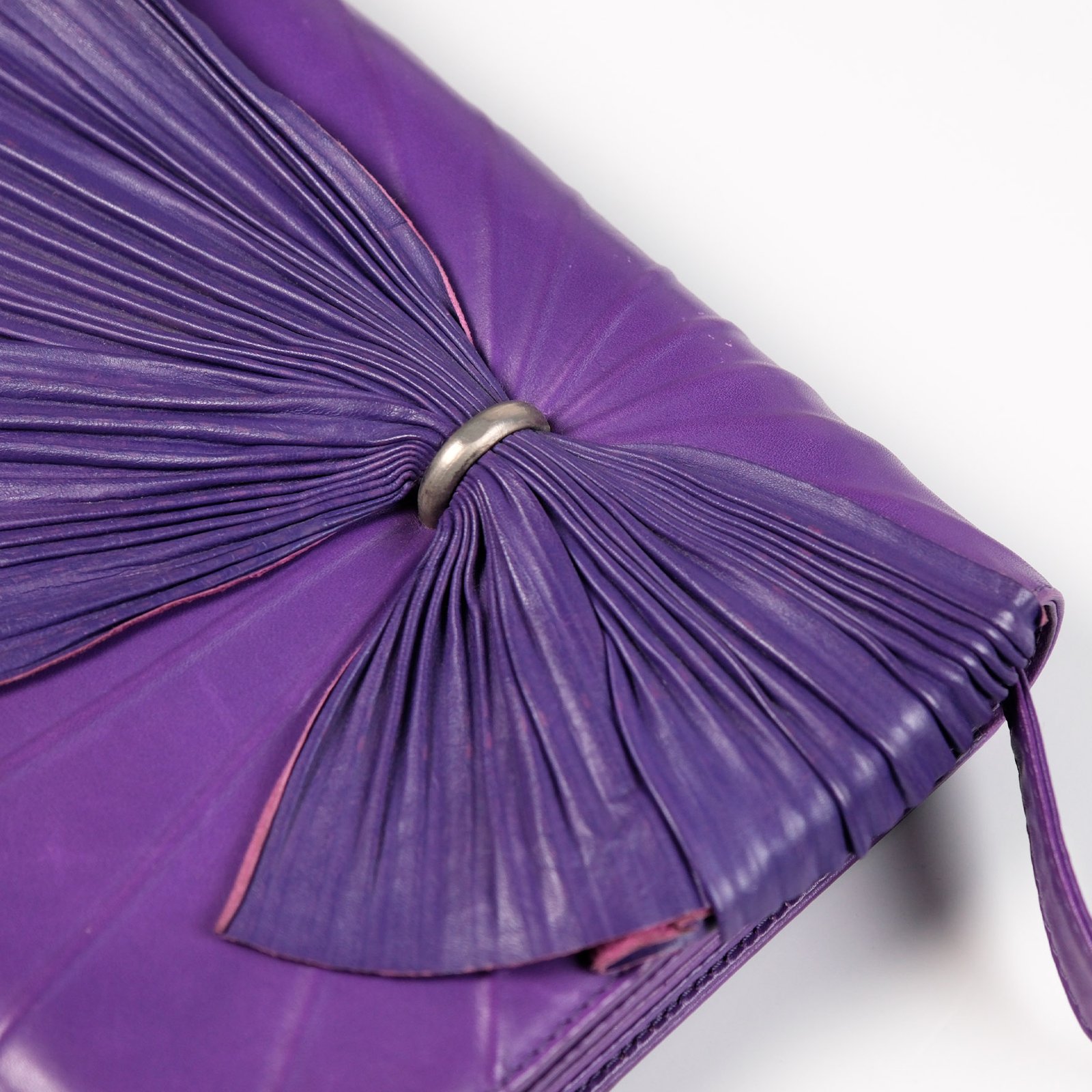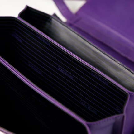 Borsa Fiocco Gianni Versace anni 80\90 presenta un fiocco plissettata in pelle con un passante metallico attaccato. All’interno della borsa a fisarmonica , lo scomparto è foderato con l’iconico nome Gianni Versace. C’è anche un piccolo scomparto con cerniera. La borsa può essere utilizzata come pochette o come borsa a tracolla, la tracolla è rimovibile.