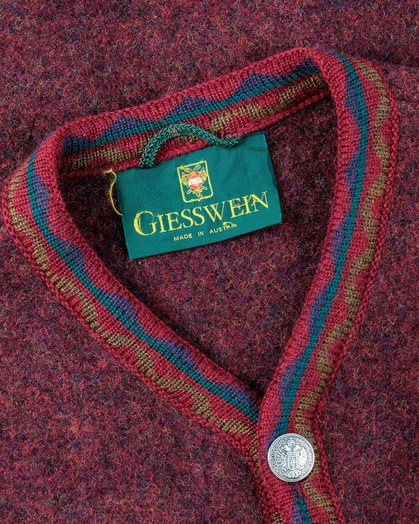 Questo cardigan\giacca Giesswein in lana cotta tirolese vintage anni ’80, realizzato in 100% pura lana spessa e compatta , rappresenta una delle migliori espressioni della tradizione alpina: caldo, resistente e intramontabile. I classici bottoni e le cuciture bordate testimoniano l’autenticità di un capo nato per durare. Ha anche il bottone per sostituzione.