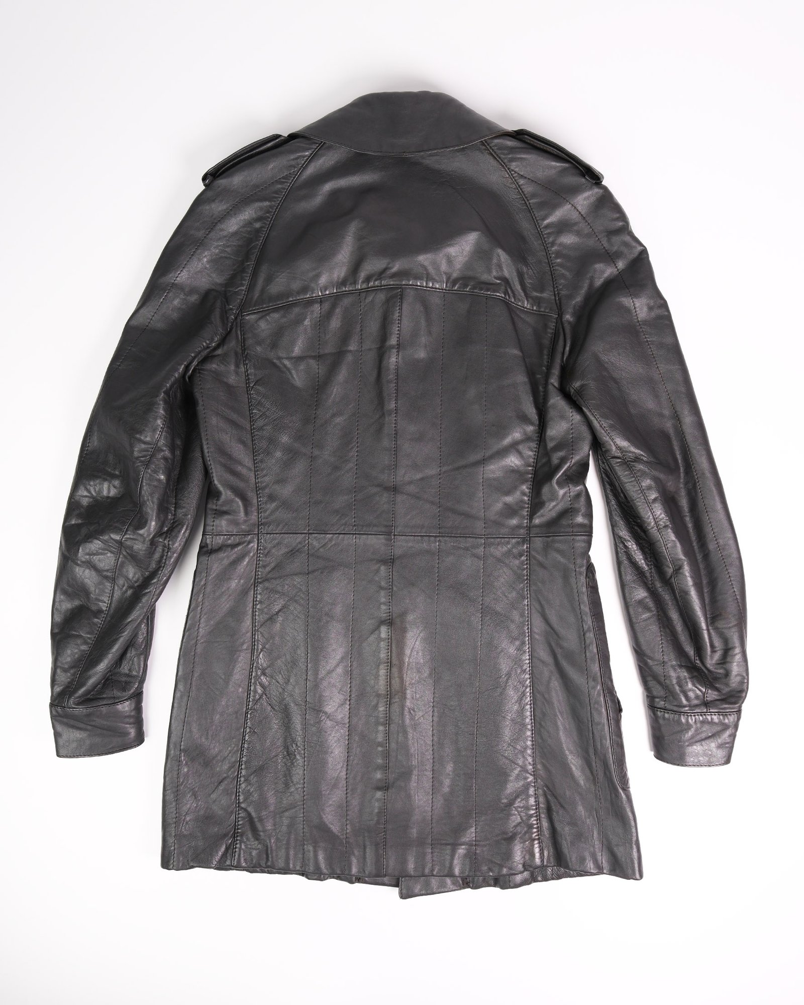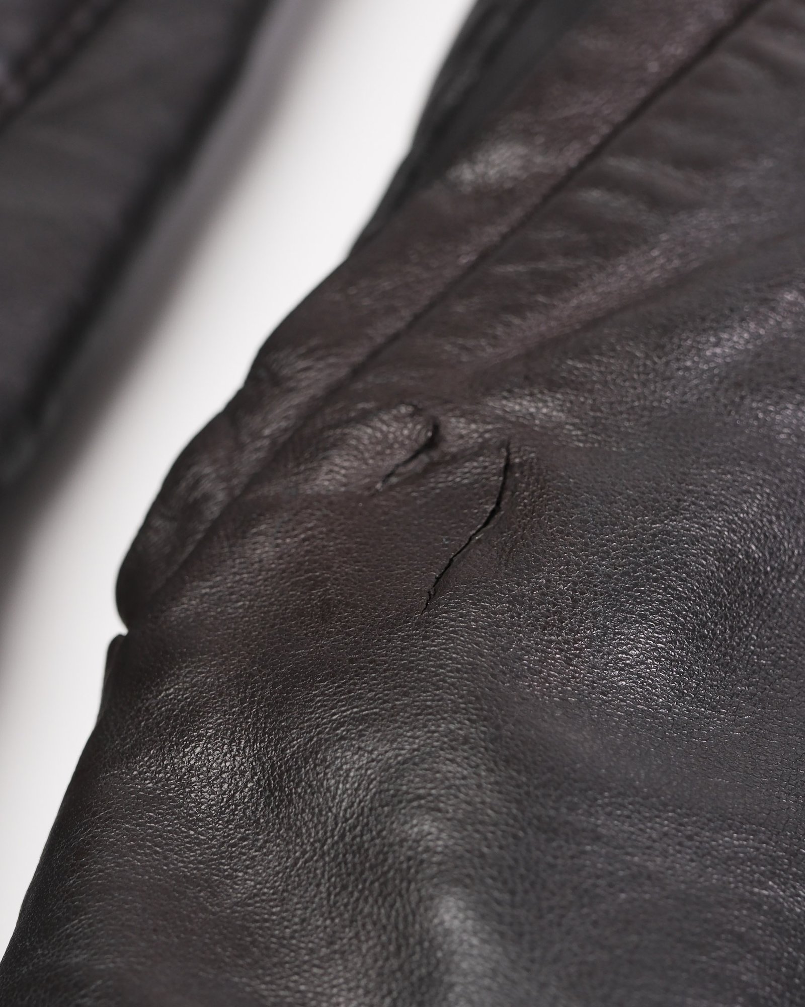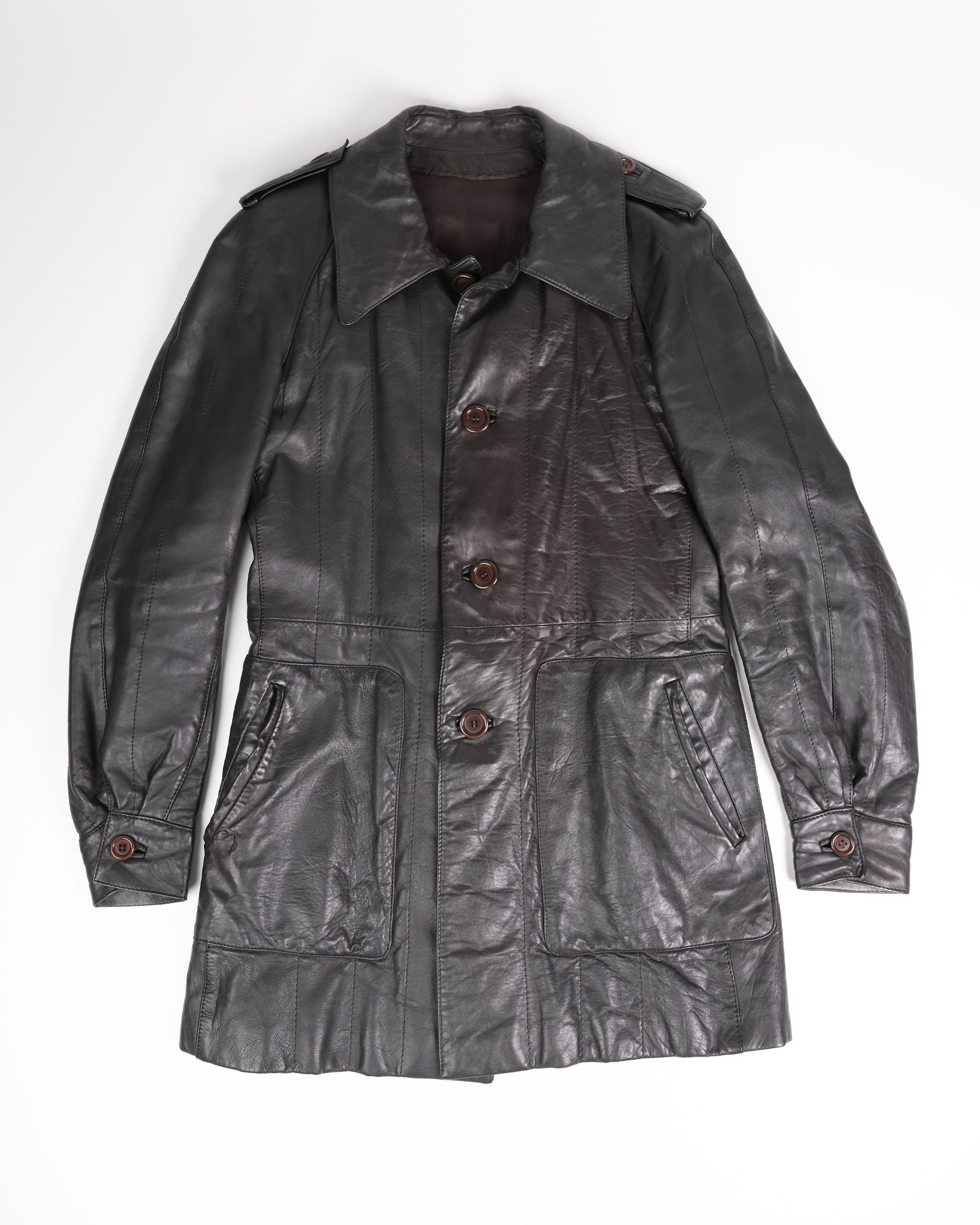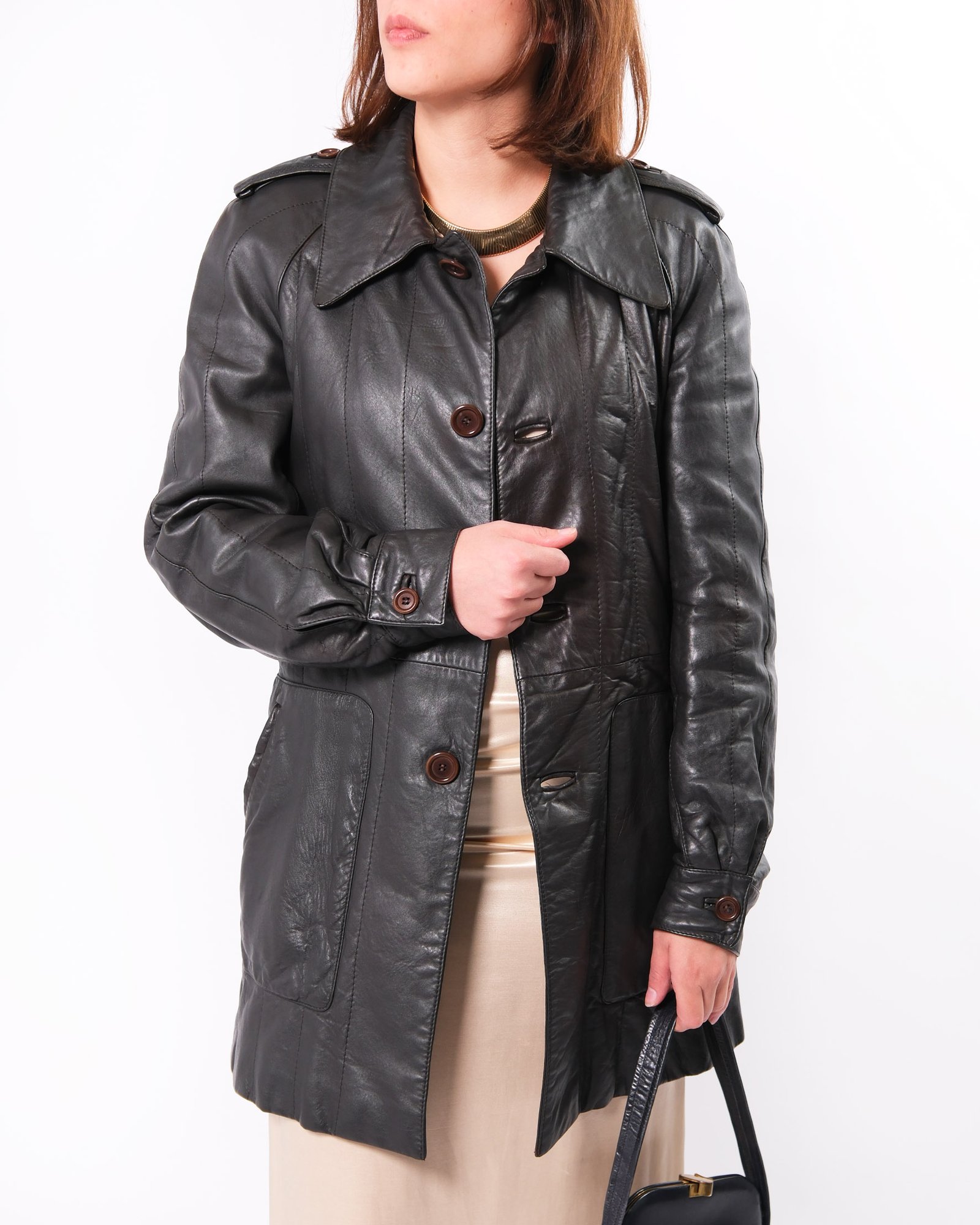 Giacca in vera pelle color cioccolato con cuciture verticali, 2 tasche sul davanti, spalline con pattine e bottone, collo classico e chiusura con bottoni .