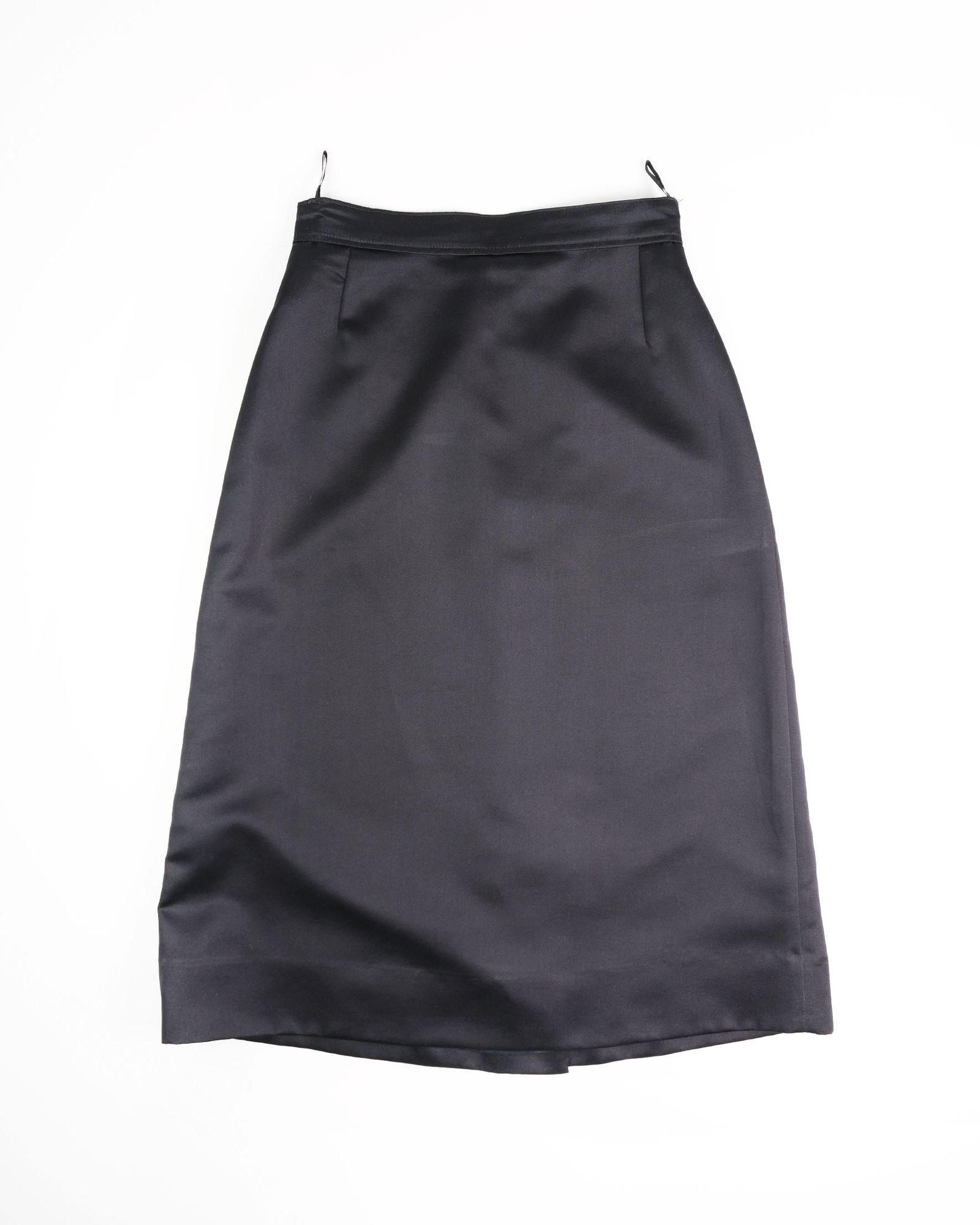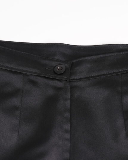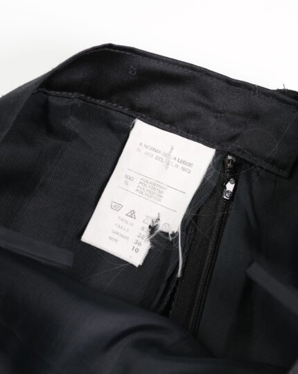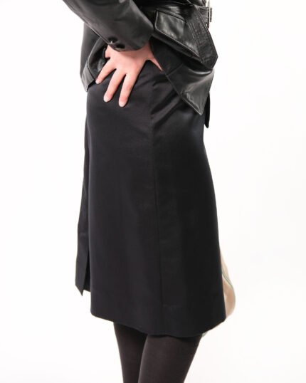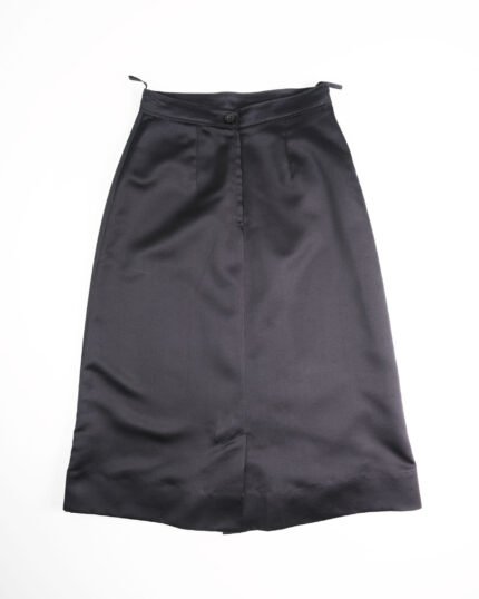Gonna vintage in simil seta colore nero, zip e bottone sul retro. In 100% poliestere. Fodera interna in acetato e viscosa.