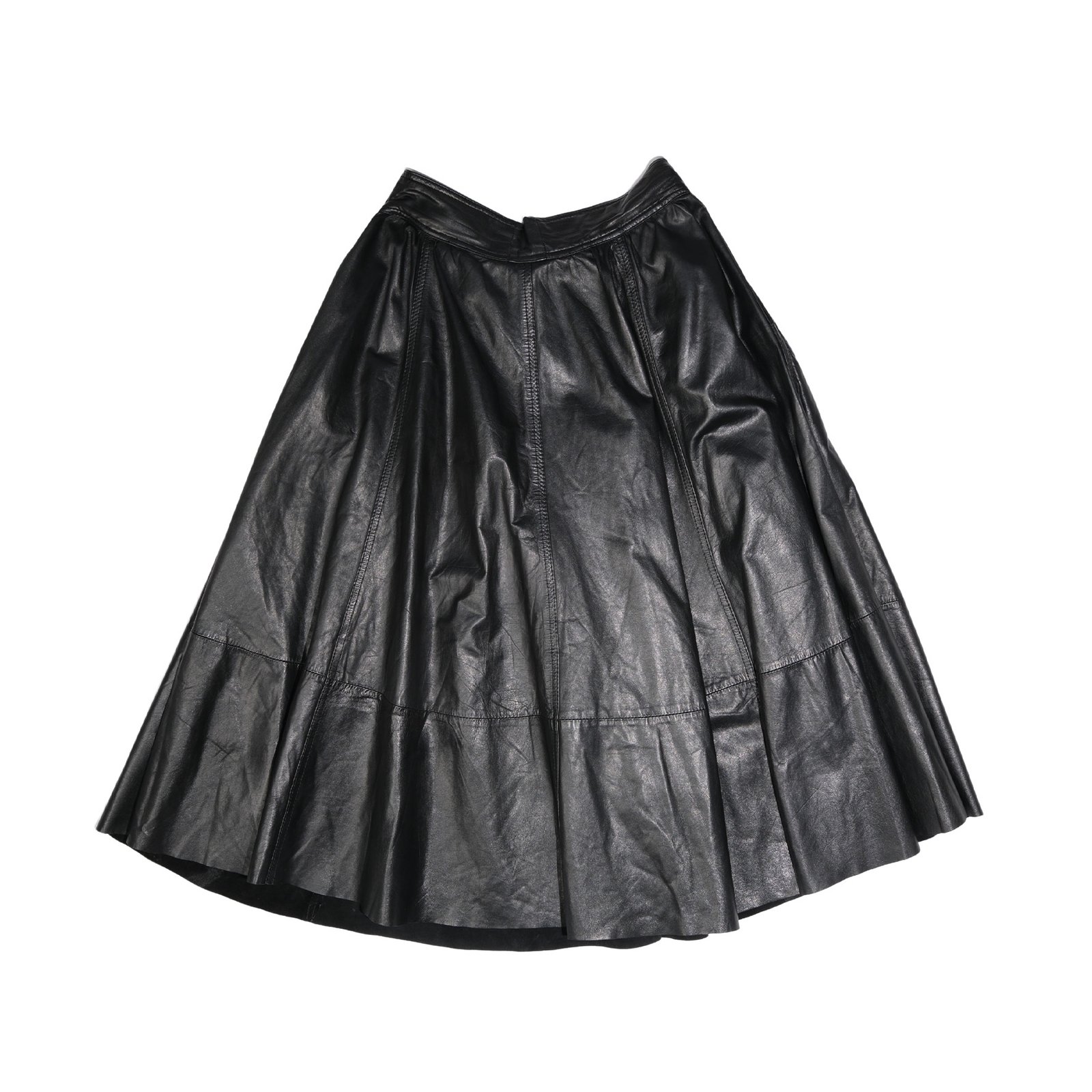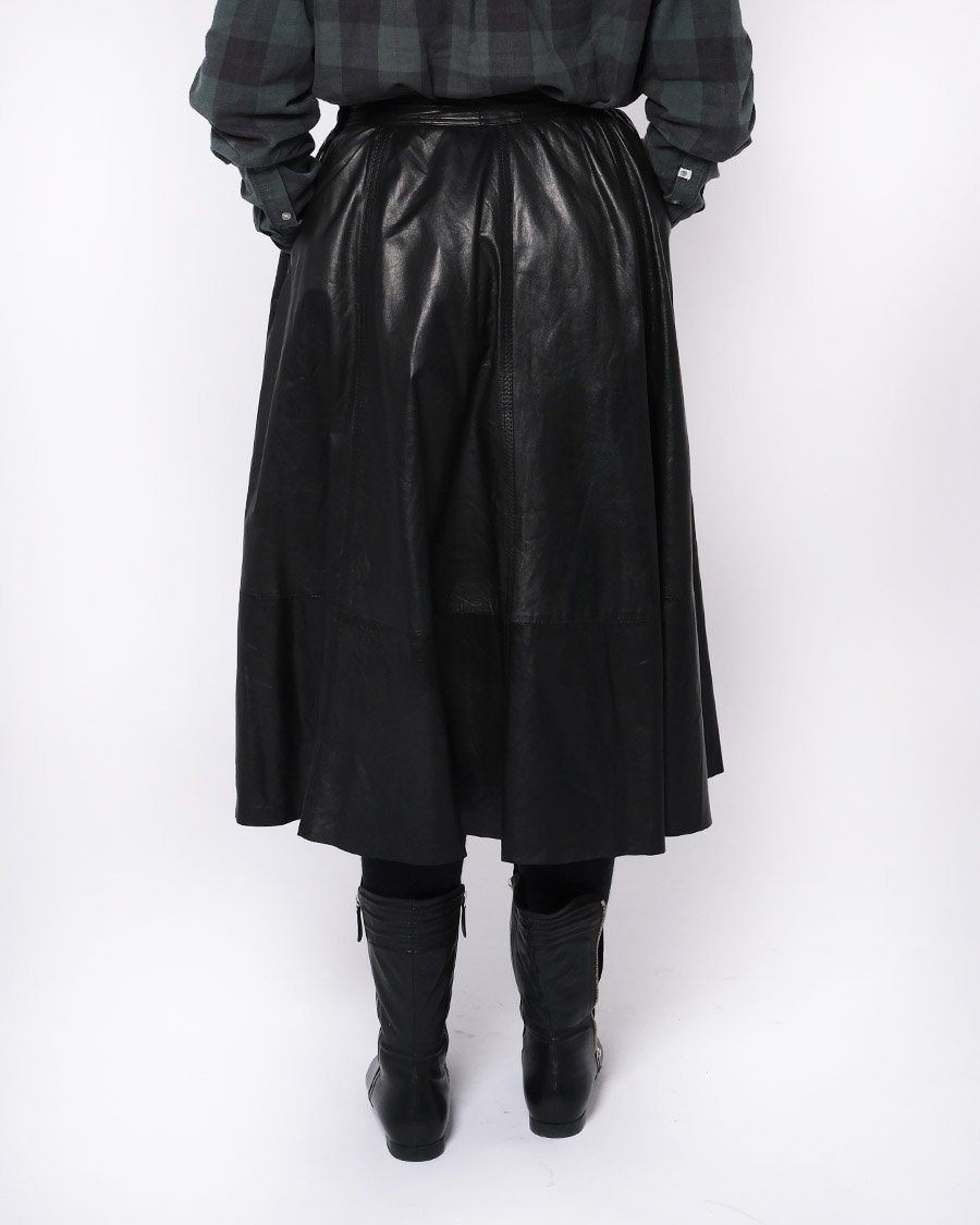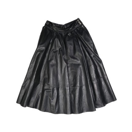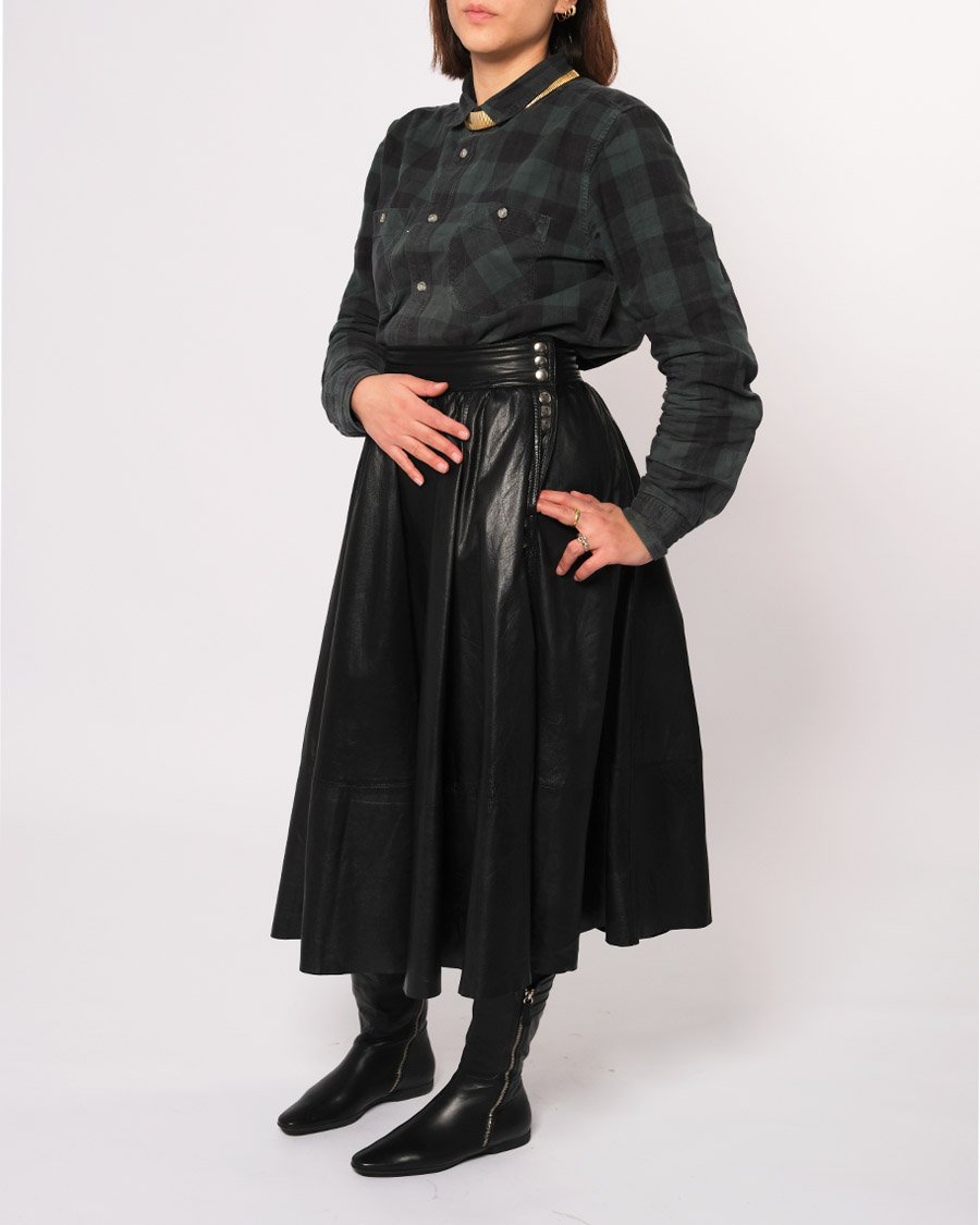 Gonna in vera pelle a ruota, chiusura con bottoni a pressione sul lato,2 tasche .